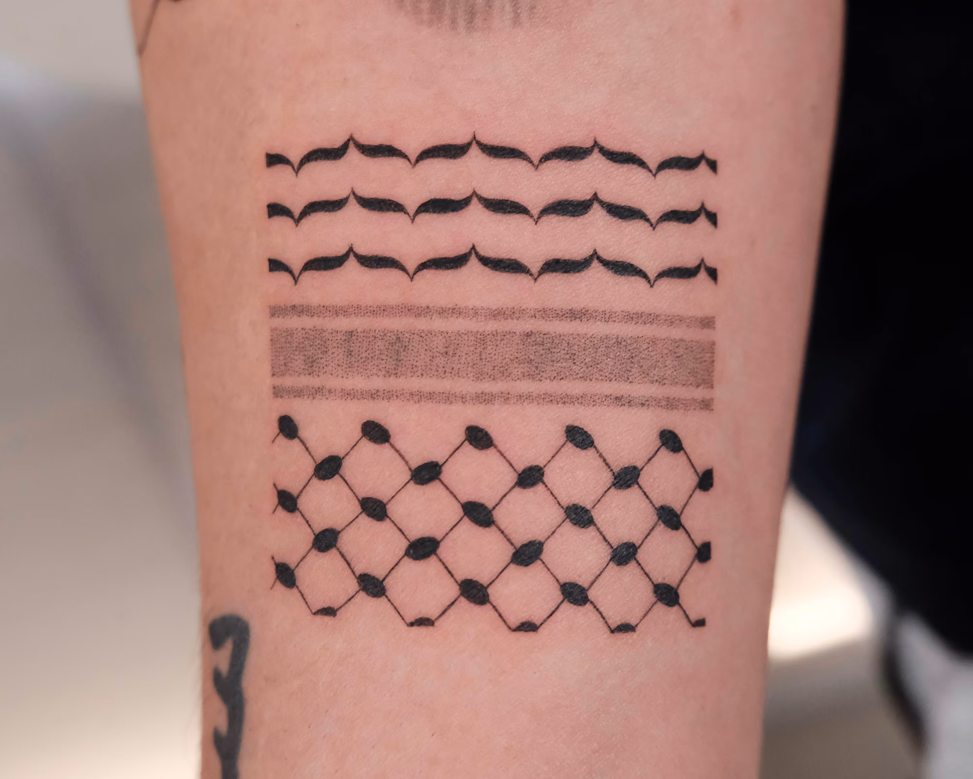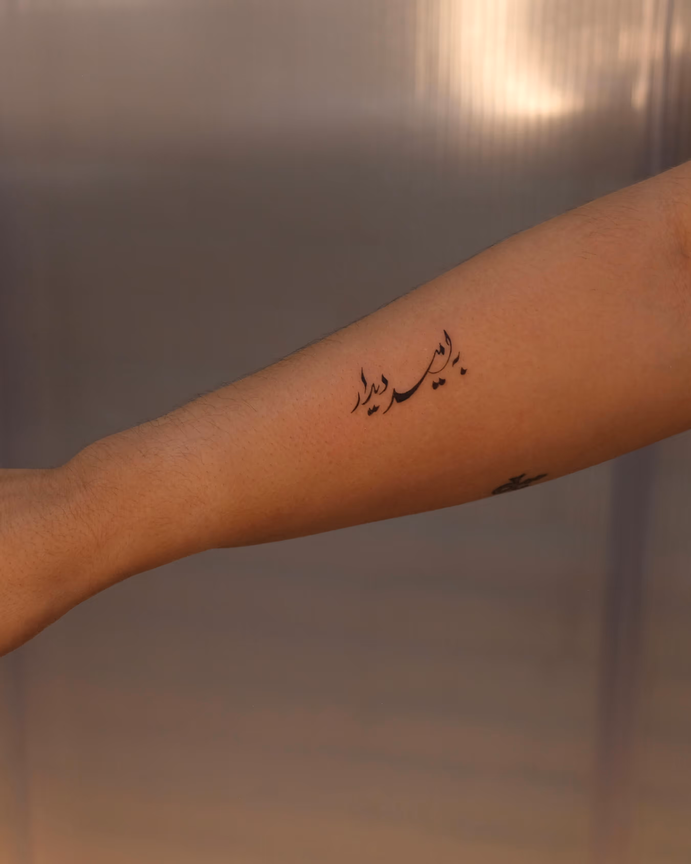 Noore is a New York-based tattoo artist of Palestinian and Lebanese descent. Her work focuses primarily on Arabic calligraphy and Middle Eastern iconography, drawing inspiration from both traditional and contemporary Middle Eastern art. Her artistic style can be described as playful, bringing levity to even the more serious subject matters. She approaches each piece with intention and an honor for her clients' stories.