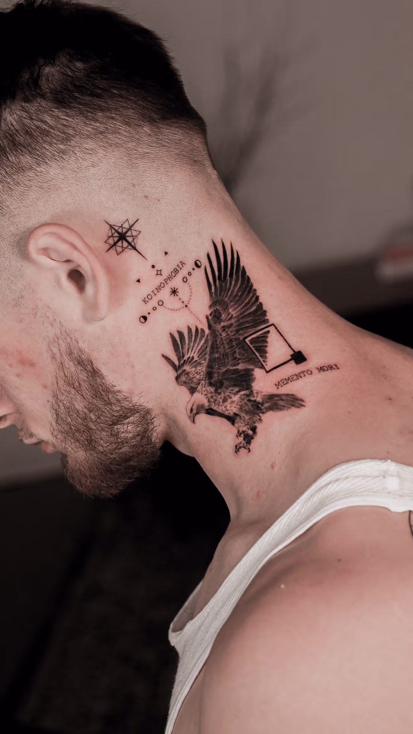The neck is a bold, high-visibility spot—perfect for collectors who want to wear their story out loud. While once considered “edgy,” neck tattoos today are increasingly embraced by creatives and professionals alike.